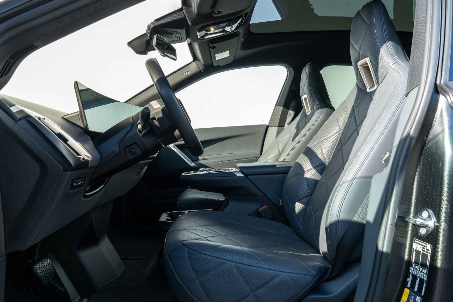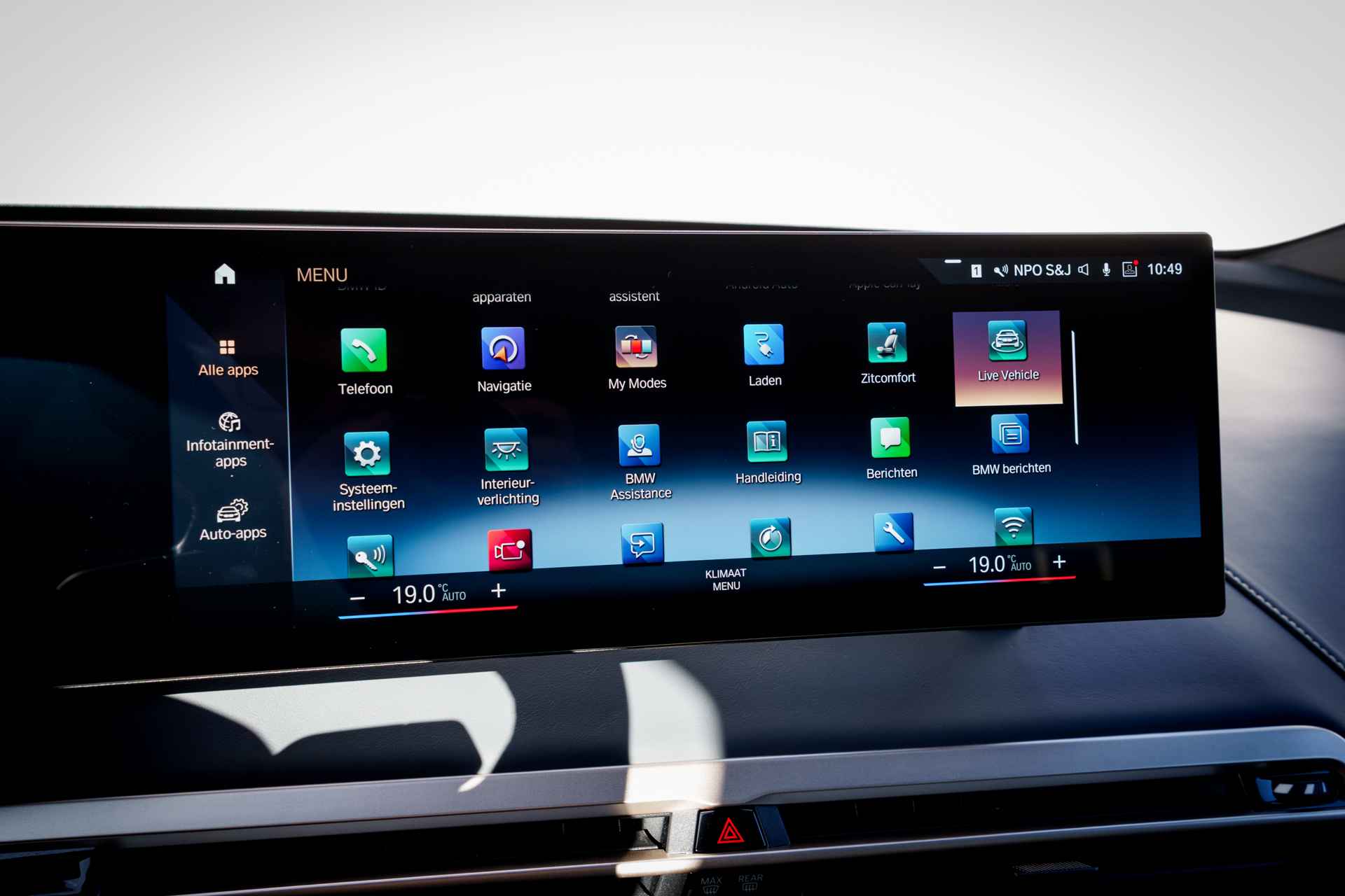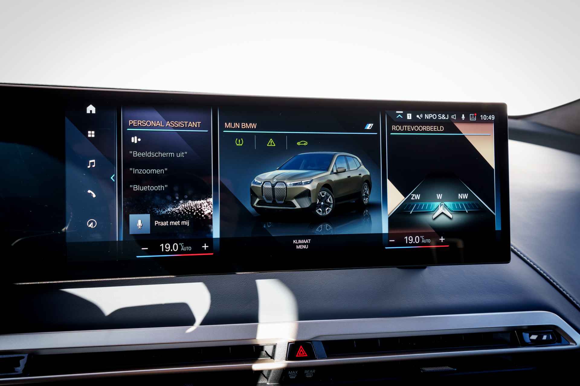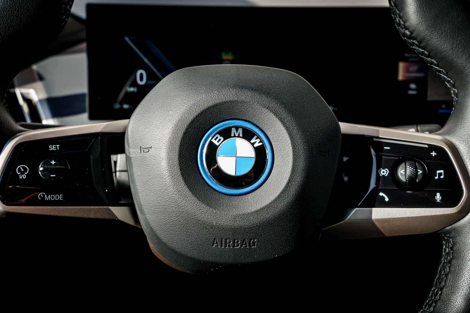 BMW had een reeks nieuwe elektrische auto's geïntroduceerd. De meest iconische daarvan is de "iX". Dat is niet alleen omdat de iX veruit de grootste is, maar ook omdat het model er bijzonder uitziet. De vormgeving van het interieur is minstens zo baanbrekend als die van het exterieur. Opnieuw zetten rechte lijnen en scherpe hoeken de toon. Een minimalistische opzet zorgt samen met bijzondere materialen (vegan leder) en kleuren voor een rustige sfeer. Alhoewel de iX niet de allerlangste SUV in zijn segment is, is de wielbasis wel uitzonderlijk lang en dat zorgt voor heel veel binnenruimte. Slechts één ding is klein aan de iX en dat is het dashboardkastje; dat is met het instructieboekje en enkele paperassen vol.