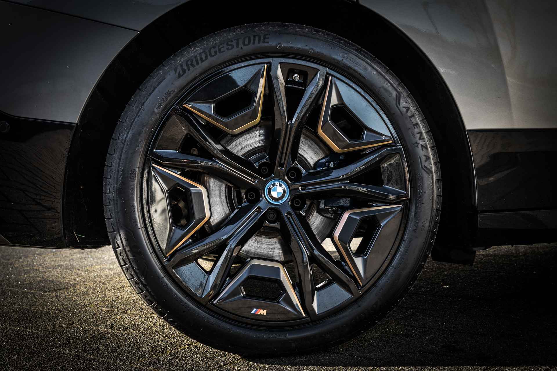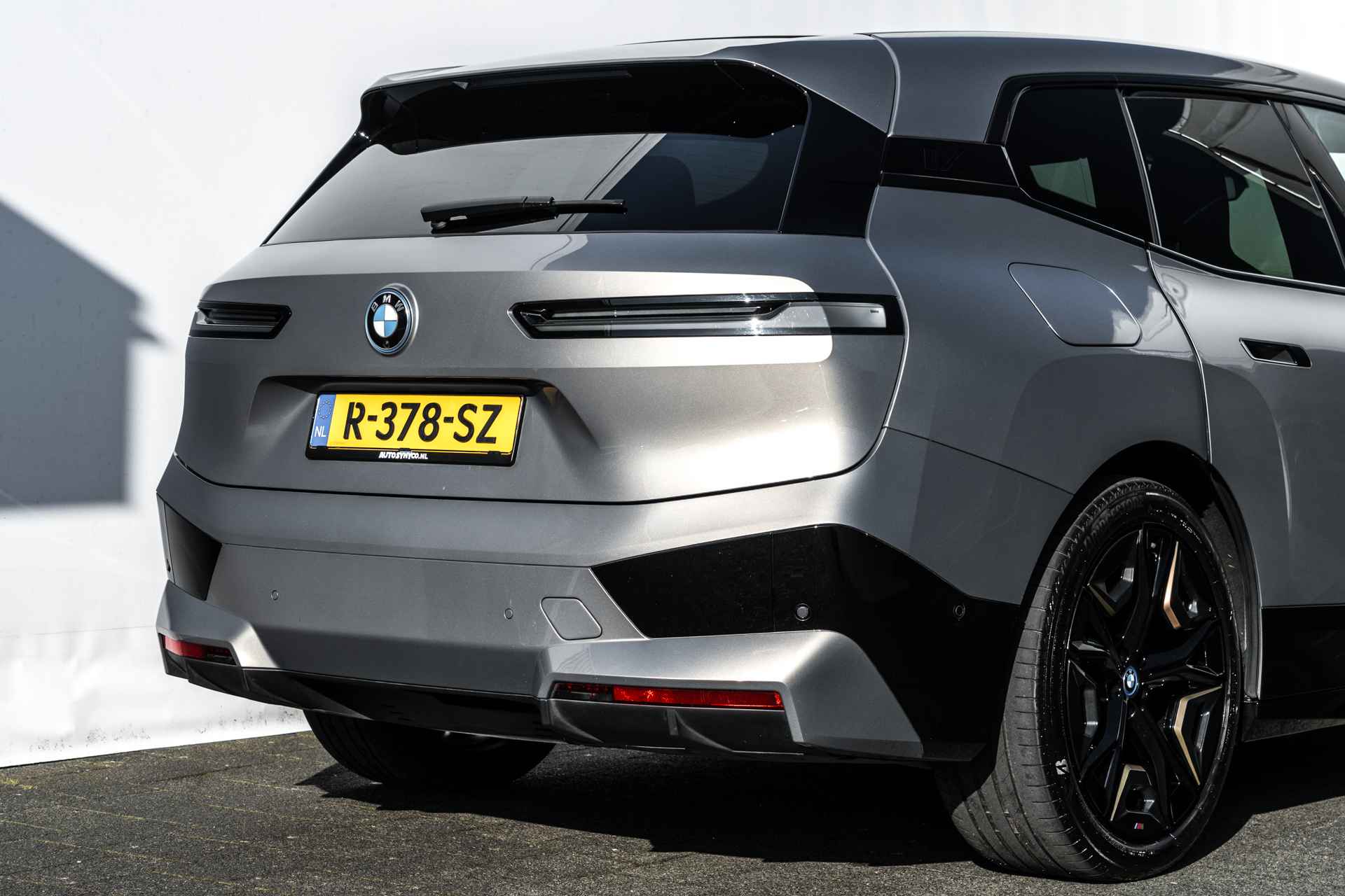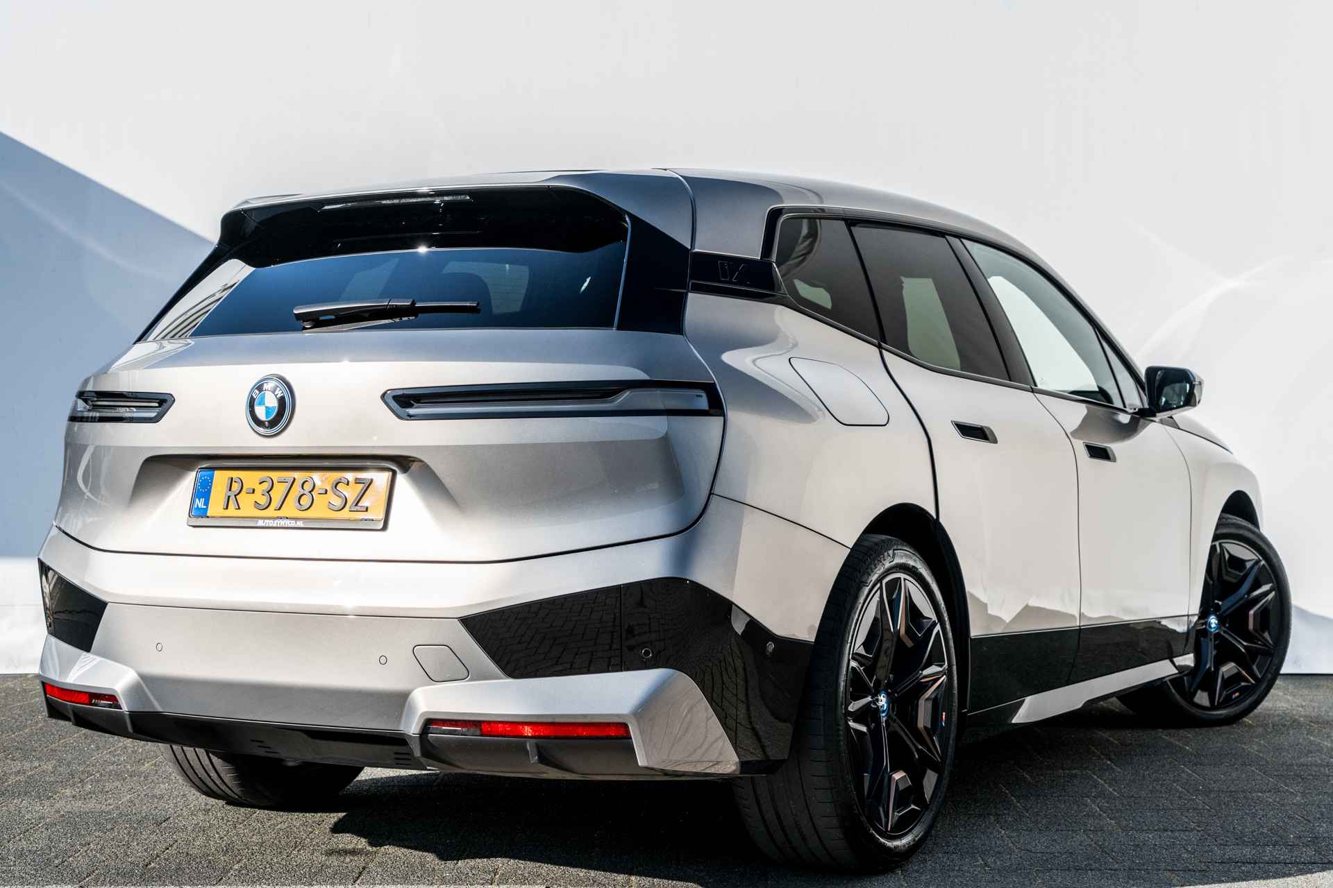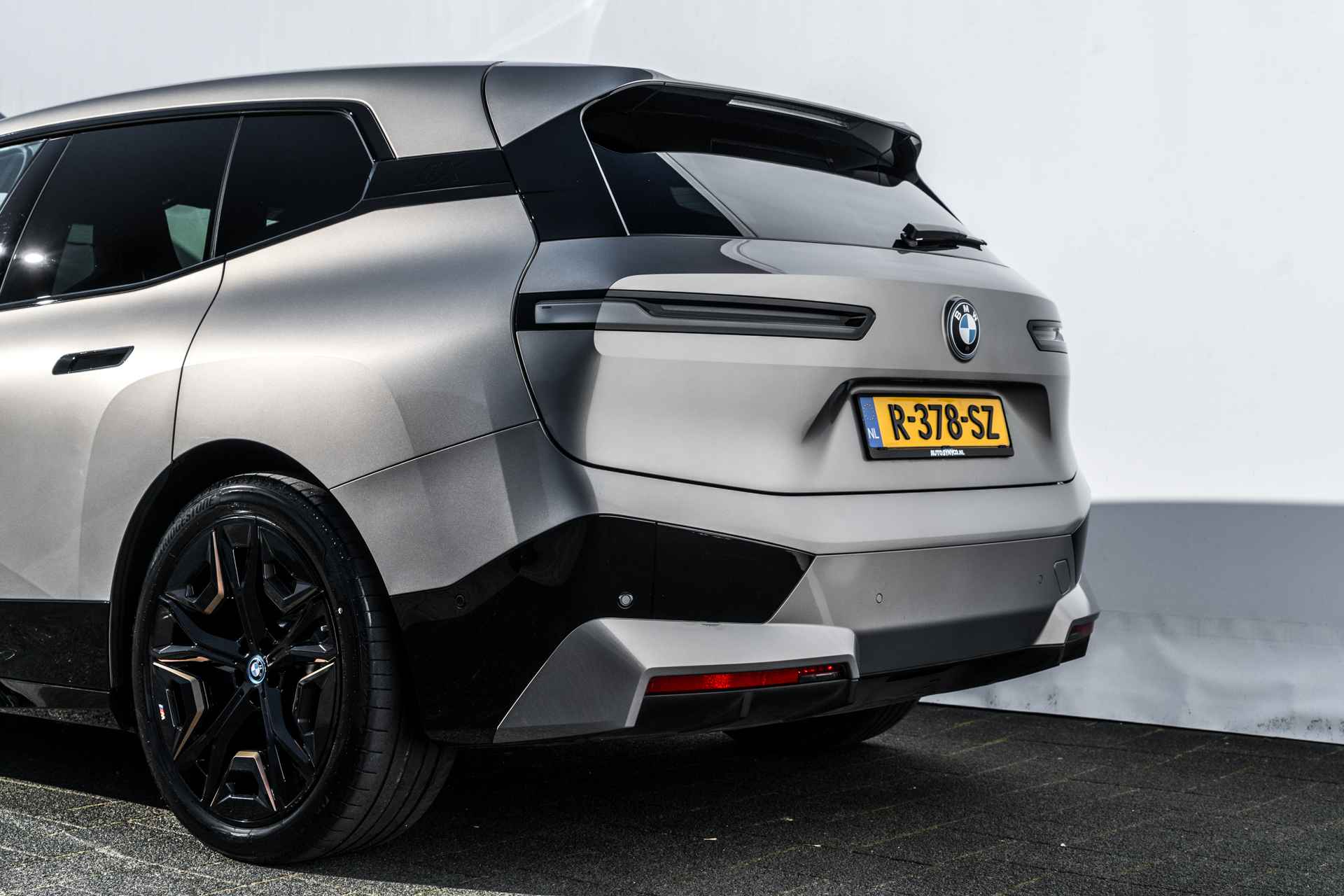 De BMX iX is een reusachtige elektrische auto die zich bedient van controversiële vormgeving. Alles aan de iX is groot en juist de vormgeving moet dat maskeren. Dat lukt echter alleen met een lichte lakkleur in combinatie met donkere accenten, zoals deze kleurencombinatie.